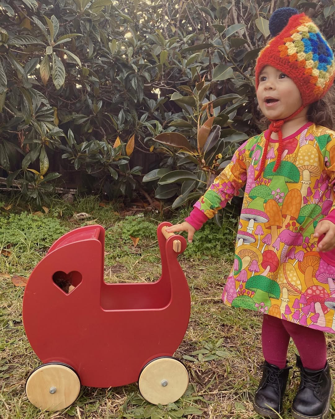 The beautiful Luxury Doll Stroller in Brown from Moovertoys is the ultimate doll stroller for young parents. With a classic and timeless design, this doll stroller is both elegant and practical. It is made of FSC-certified wood and painted with non-toxic paint, making it safe for children and a sustainable choice. It is sturdy enough to take the dolls with you on all their adventures.